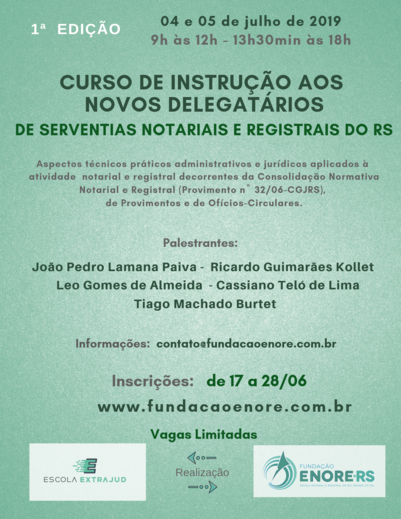 Fundação Enore e Escola Extrajud promovem 1ª Edição do Curso de Instrução aos Novos Delegatários de Serventias Notariais e Registrais do RS