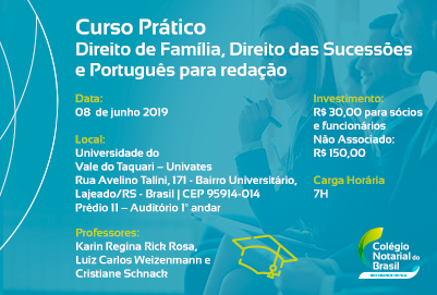 CNB/RS promove Curso Prático de Direito de Família, Direito das Sucessões e Português para Redação em Lajeado